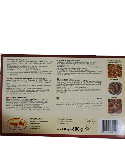 Beypilig Sivas Köfte features traditional Turkish meatballs crafted with a blend of aromatic spices and herbs. These köfte are perfectly seasoned and grilled to achieve a juicy, flavorful profile. Ideal for serving with rice, salad, or in pita bread, they bring an authentic taste of Turkish cuisine to your table, making them a delicious choice for any meal.