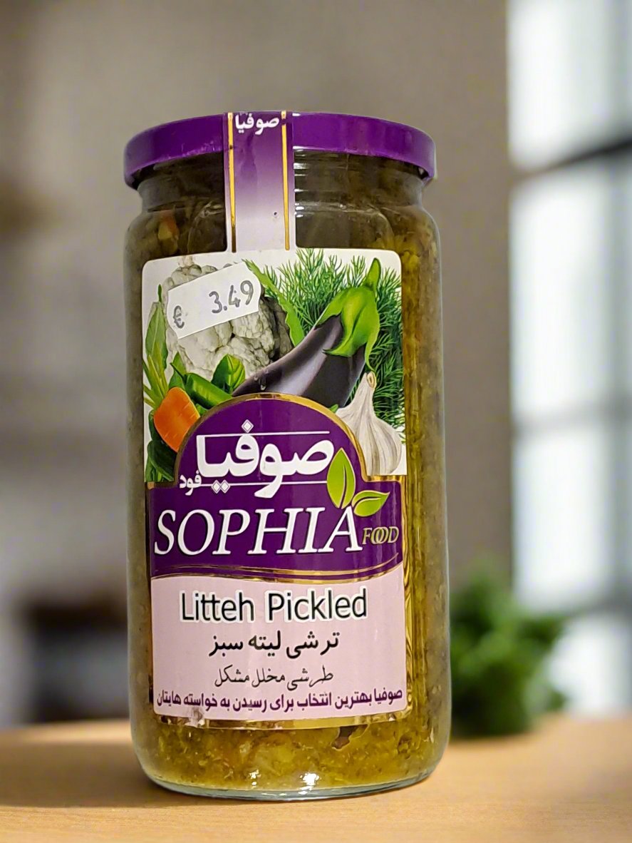 Sophia Food Litteh Pickled is a traditional Middle Eastern delicacy made from pickled turnips, known for their vibrant pink color and tangy flavor. These crunchy pickles are marinated in a blend of vinegar and spices, making them a perfect accompaniment to sandwiches, salads, or mezze platters. With their refreshing taste and satisfying crunch, they add a delightful zing to any meal, bringing a touch of authenticity to your dining experience.