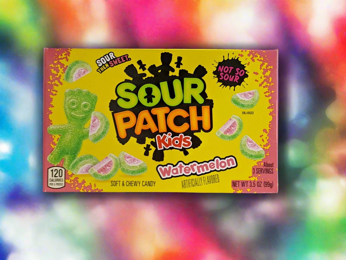 Sour Patch Kids Watermelon are chewy candies with a sour coating and a sweet, refreshing watermelon flavor. They deliver a tangy, fruity burst of taste, capturing the essence of juicy watermelon in a fun, chewy treat.
