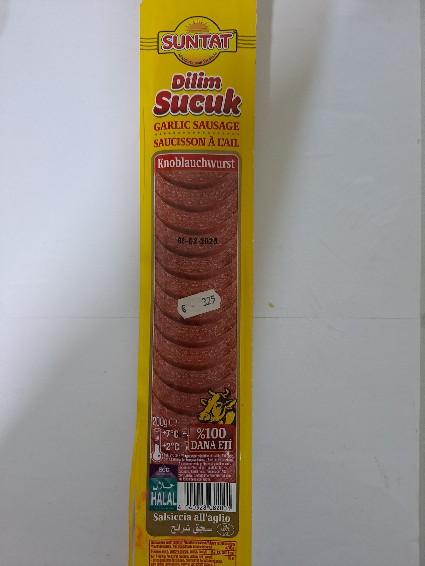Suntat Dilim Sucuk is a pre-sliced version of the traditional Turkish sausage "sucuk," known for its bold, savory, and slightly spicy flavor. Made from ground beef or lamb mixed with a variety of spices like garlic, cumin, and paprika, it’s often grilled or fried and served as a breakfast item, in sandwiches, or as part of a mezze platter. The pre-sliced format makes it convenient for quick preparation, allowing for easy use in recipes or as a tasty snack.