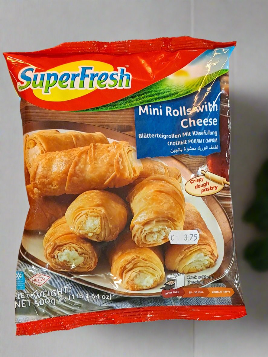 SuperFresh Mini Rolls with Cheese are bite-sized, savory snacks featuring a gooey cheese filling wrapped in a soft, fluffy roll. Perfect for quick snacks, appetizers, or party treats, these mini rolls deliver a deliciously cheesy taste in every bite. Their convenient size and satisfying flavor make them a great choice for any occasion.