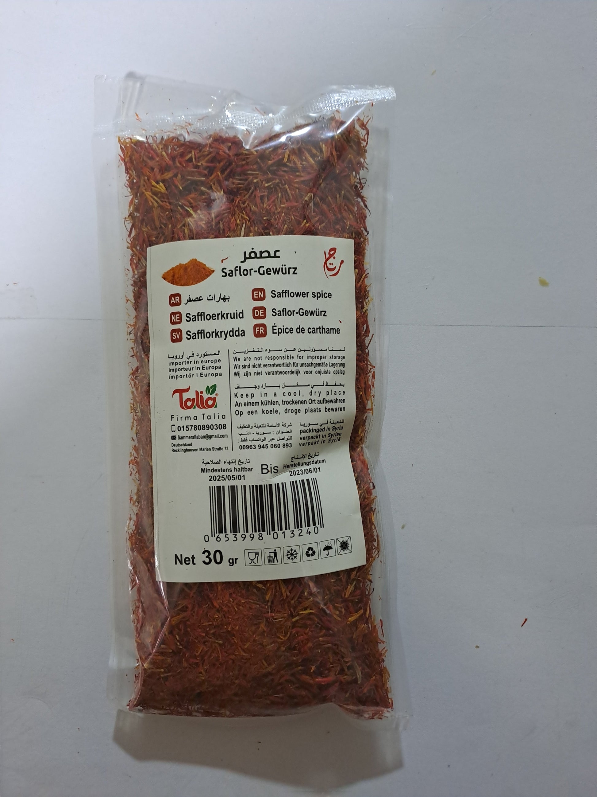 Talia Saflor-Gewürz, or safflower spice, offers a unique, mild flavor and vibrant color to your dishes. Often used as a substitute for saffron, it adds a subtle, floral note to soups, stews, rice dishes, and curries. This spice is perfect for enhancing the visual appeal and taste of your culinary creations with its rich, golden hue.