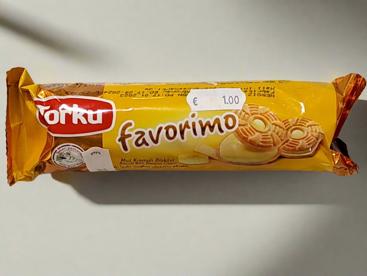 Torku Favorimo Biscuits with Banana Cream are a delicious snack that features crispy biscuits filled with smooth and creamy banana-flavored filling. The combination of the crunchy exterior and the rich, sweet banana cream creates a delightful taste experience that's both satisfying and indulgent. Perfect for enjoying on their own, with a cup of tea or coffee, or as a treat in lunchboxes, these biscuits are sure to please both kids and adults alike. Torku Favorimo Biscuits with Banana Cream are a delightful way to satisfy your sweet cravings with a burst of banana flavor.