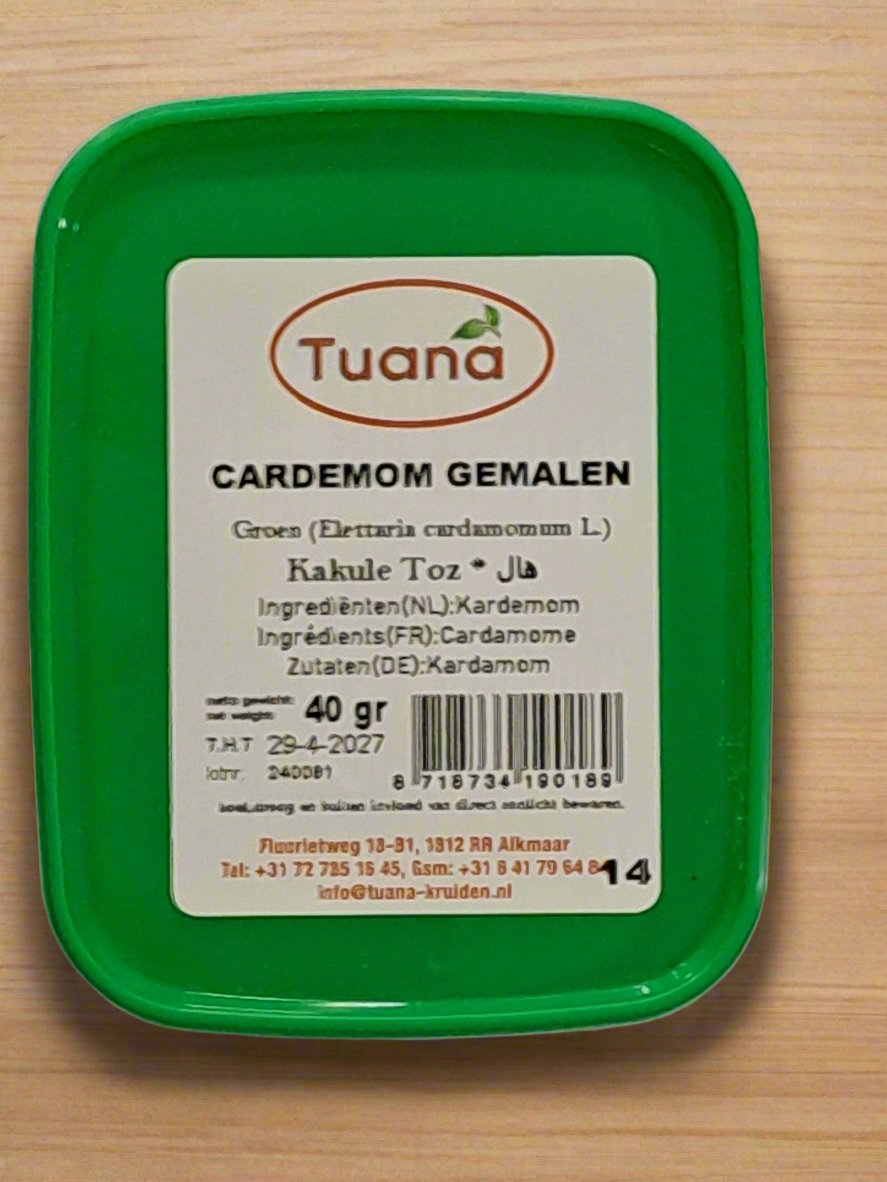 Tuana Cardemom Gemalen is finely ground cardamom that adds a warm, aromatic sweetness to both sweet and savory dishes. Perfect for baking, curries, and even coffee or tea, this spice brings a hint of citrus and spice, enhancing your recipes with a rich, exotic flavor. A must-have for elevating your culinary creations.