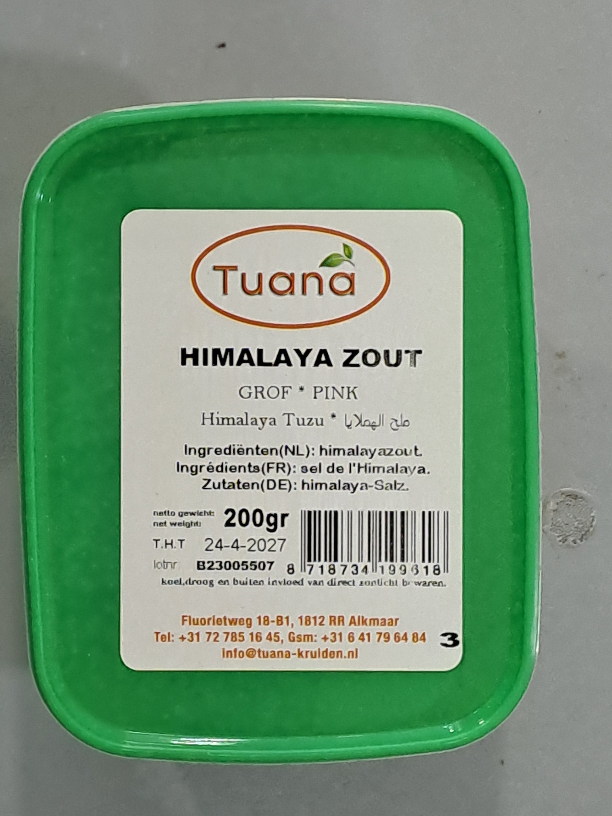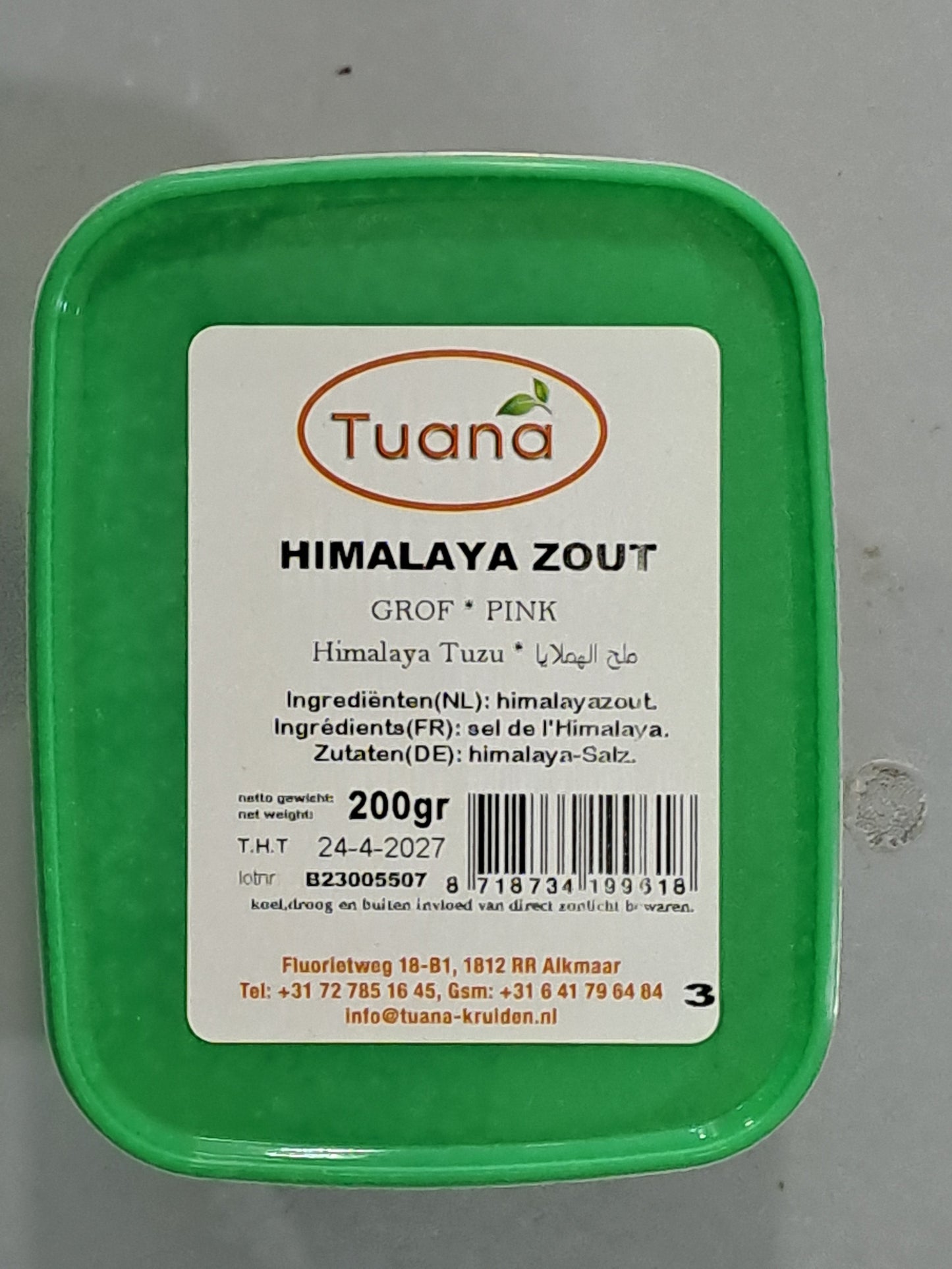 Tuana Himalaya Zout Grof * Pink is coarse pink Himalayan salt, known for its natural mineral content and subtle flavor. This salt adds a touch of color and a mild, earthy taste to dishes, making it a visually appealing and flavorful seasoning choice.