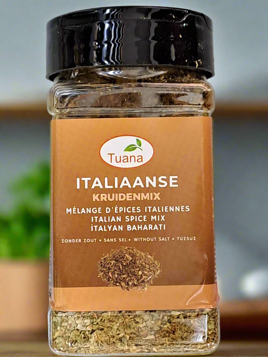 Tuana Italiaanse Kruidenmix is a savory blend of Italian herbs that brings a taste of the Mediterranean to your kitchen. This mix combines basil, oregano, rosemary, and thyme, among other herbs, to elevate pasta sauces, pizzas, and roasted vegetables with authentic Italian flavor. It’s the perfect seasoning for adding a burst of freshness and complexity to your favorite Italian dishes.