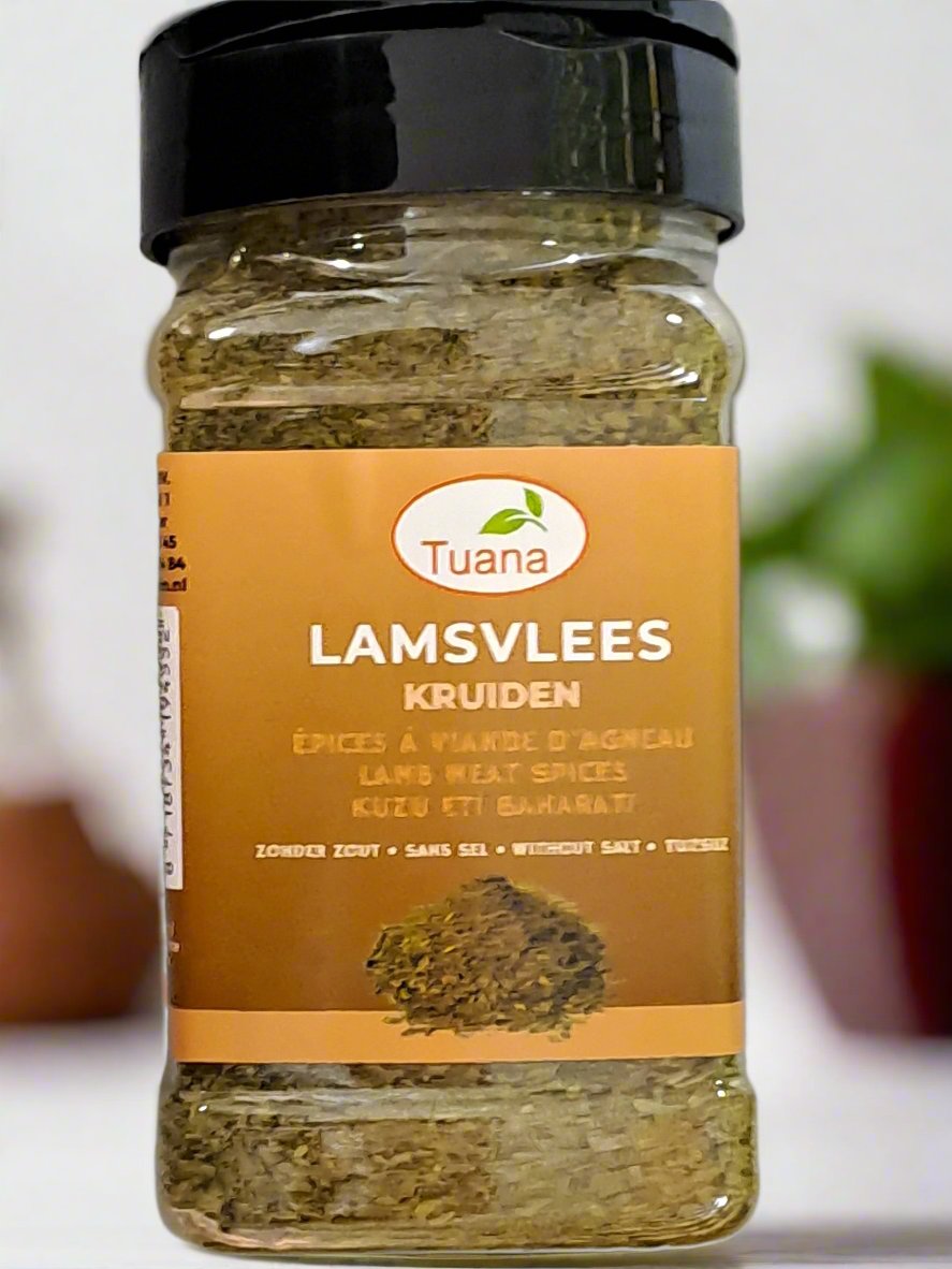 Tuana Lamsvlees Kruiden is a specially crafted seasoning blend designed to enhance the natural flavors of lamb. Combining a mix of herbs and spices, it adds a savory depth and aromatic richness to your lamb dishes, whether you’re grilling, roasting, or braising. Ideal for creating perfectly seasoned, flavorful lamb every time.