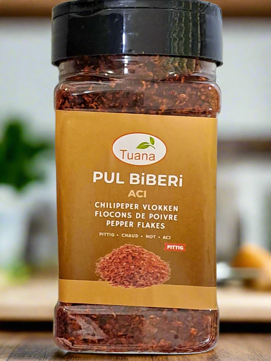 Tuana Pul Biberi Aci is a type of Turkish chili pepper flake known for its vibrant red color and spicy...
