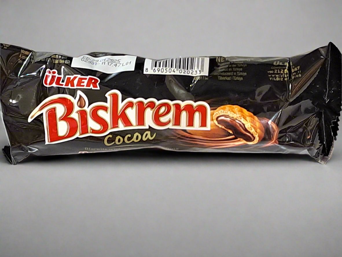 Ulker Biskrem Cocoa is a popular chocolate cream-filled biscuit that features a crispy outer layer with a smooth cocoa cream center. These delightful cookies are perfect for snacking, with a rich chocolate flavor that makes them a favorite among both kids and adults. Enjoy them with a cup of tea or coffee, or as a sweet treat any time of day!